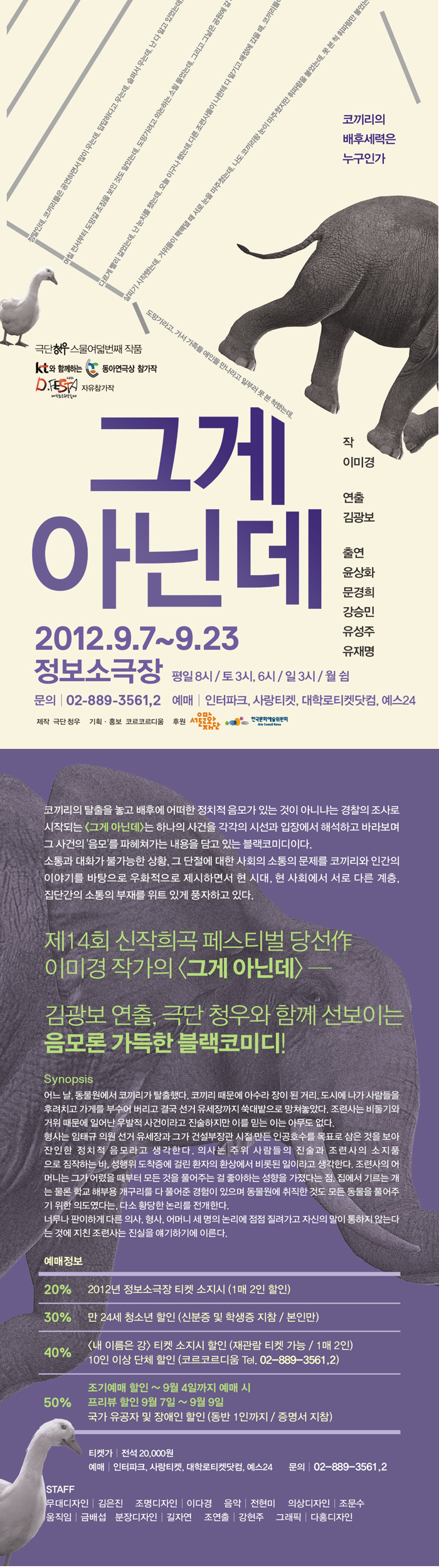 | 제작 | 제작: 극단 청우/후원: 서울문화재단, 한국문화예술위원회 |