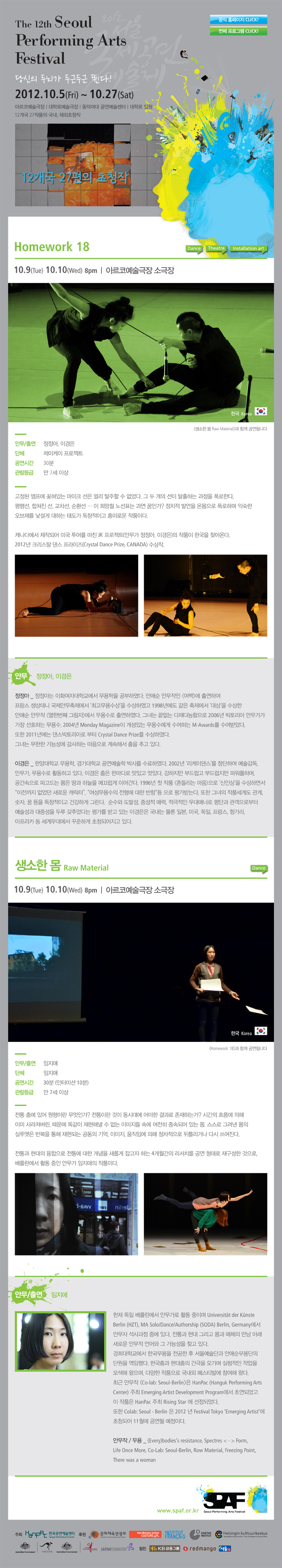 [2012 서울국제공연예술제] homework 18/ 생소한 몸