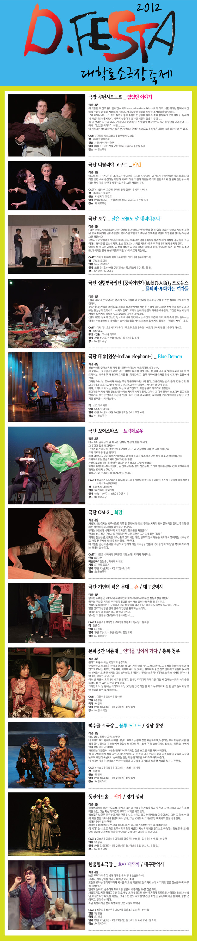 | 제작 | 주최 (사)한국소극장협회, 주관 D.FESTA 집행위원회 |