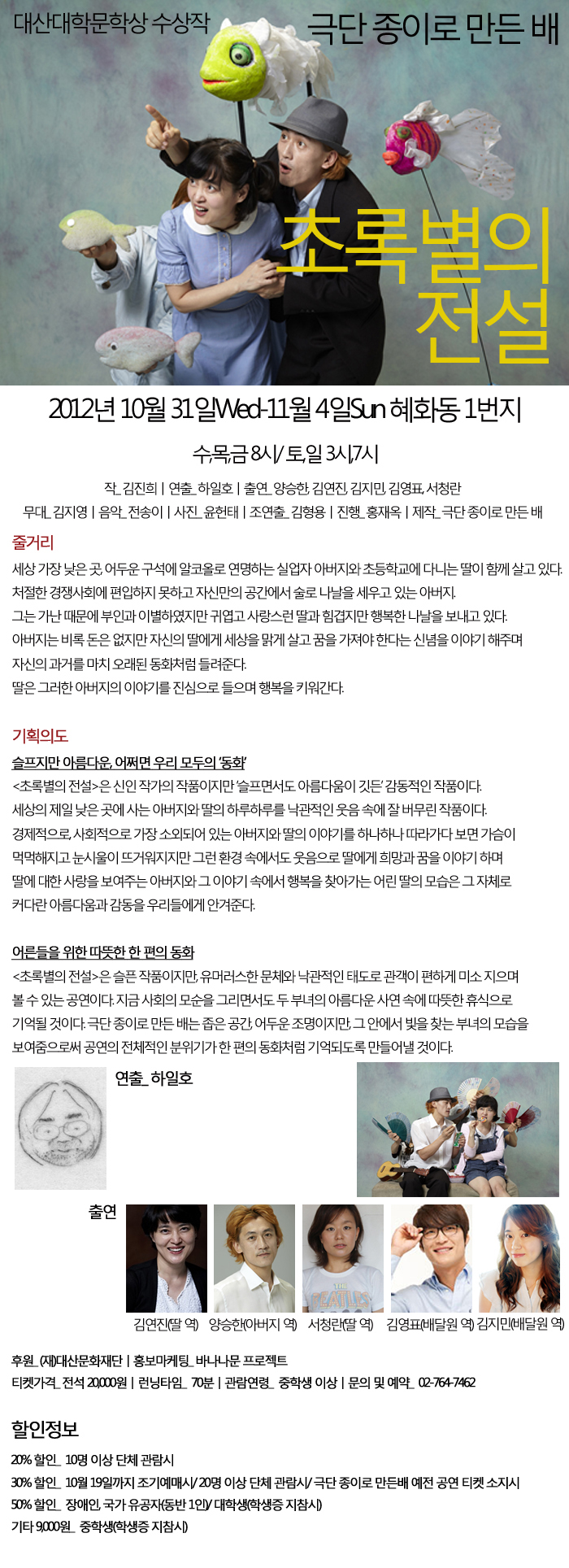 | 제작 | 후원: (재)대산문화재단/제작: 극단 종이로 만든 배 |