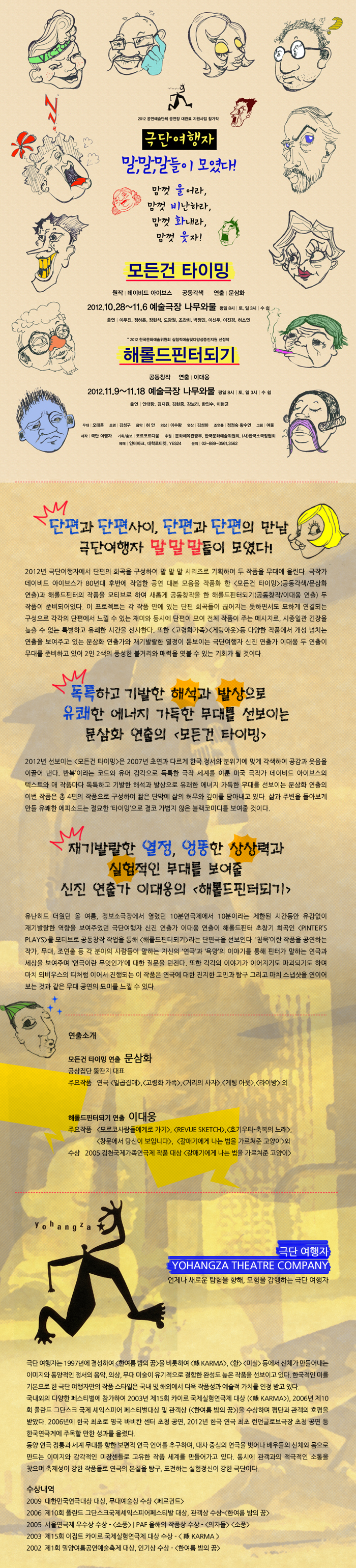 | 제작 | 제작: 극단 여행자/후원: 문화체육관광부, 한국문화예술위원회, (사)한국소극장협회/기획,홍보: 코르코르디움 |