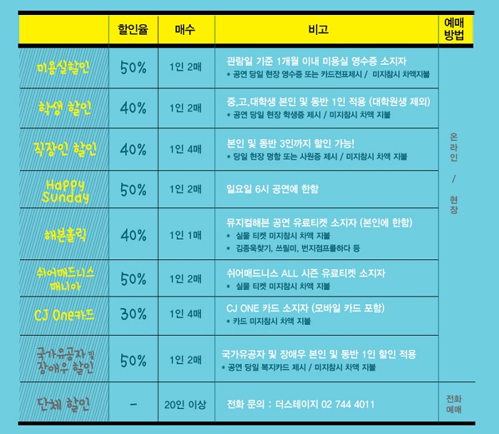| 공연문의 | (주)더스테이지 02)744-4011 | ||||||||||||||||||||||||||||||||||||||||||||||||||||||