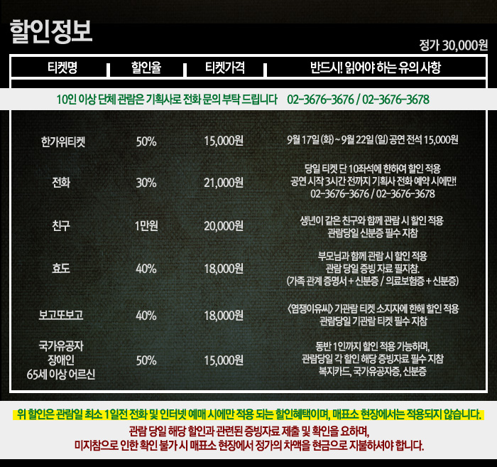 | 공연문의 | 02-3676-3676 / 070-4084-3676 |