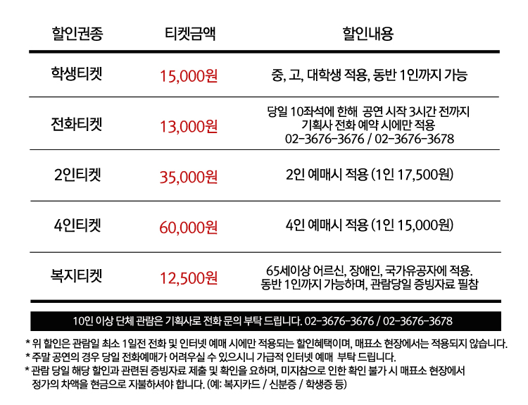 | 공연문의 | 02-3676-3676 / 02-3676-3678 |