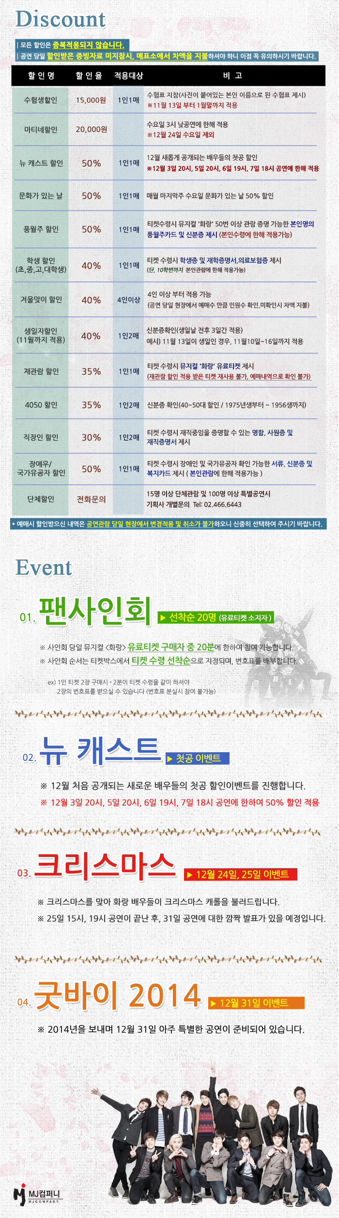 | 제작 | 주최 : MJ컴퍼니 / 주관 : MJ컴퍼니 | ||||||||||||||||||||||||||||||||||||||||||||||||||||||