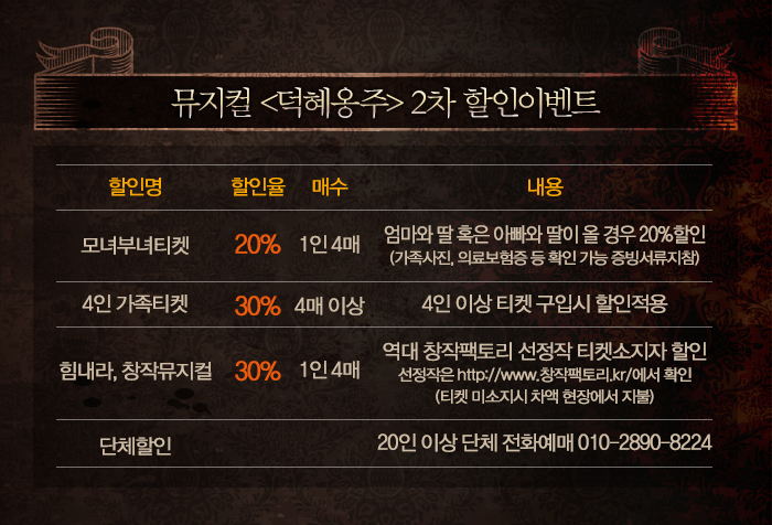 | 할인정보 | 조기예매 / ~12월 15일까지 예매시 / 30%할인 |
