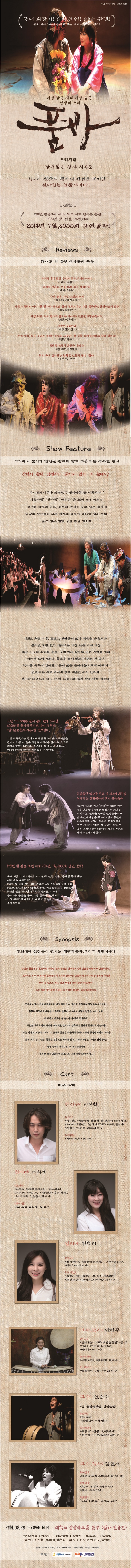 | 공연시간 | 화~금 7:30 / 토,일,공휴일 4시 / 월요일 공연없음 | ||||||||||||||||||||||||||||||||||||||||||||||||||||||