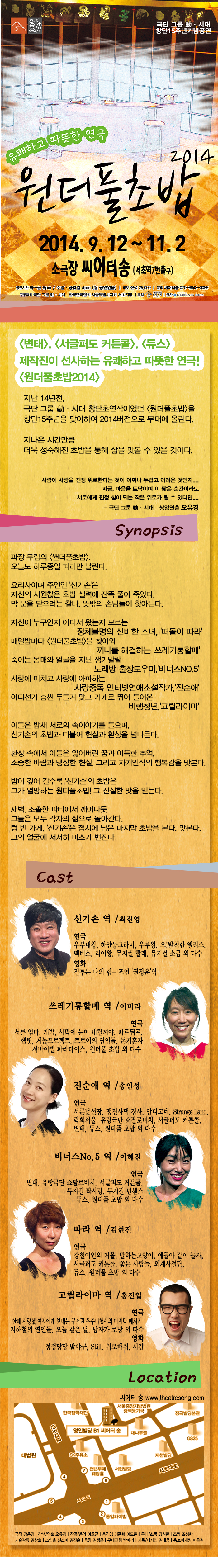 | 공연시간 | 화~금 8시 / 주말,공휴일 4시 / 월요일 쉼 | ||||||||||||||||||||||||||||||||||||||||||||||||||||||