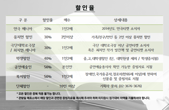 | 공연문의 | 02-3676-3676 / 02-3676-3678 | ||||||||||||||||||||||||||||||||||||||||||||||||||||||
