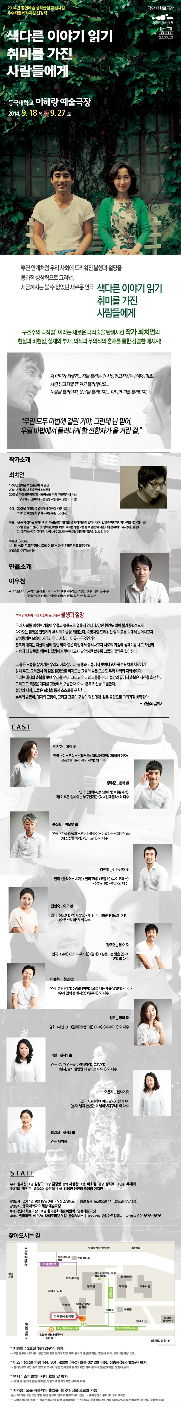 | 공연장소 | 동국대학교 이해랑 예술극장 | ||||||||||||||||||||||||||||||||||||||||||||||||||||||