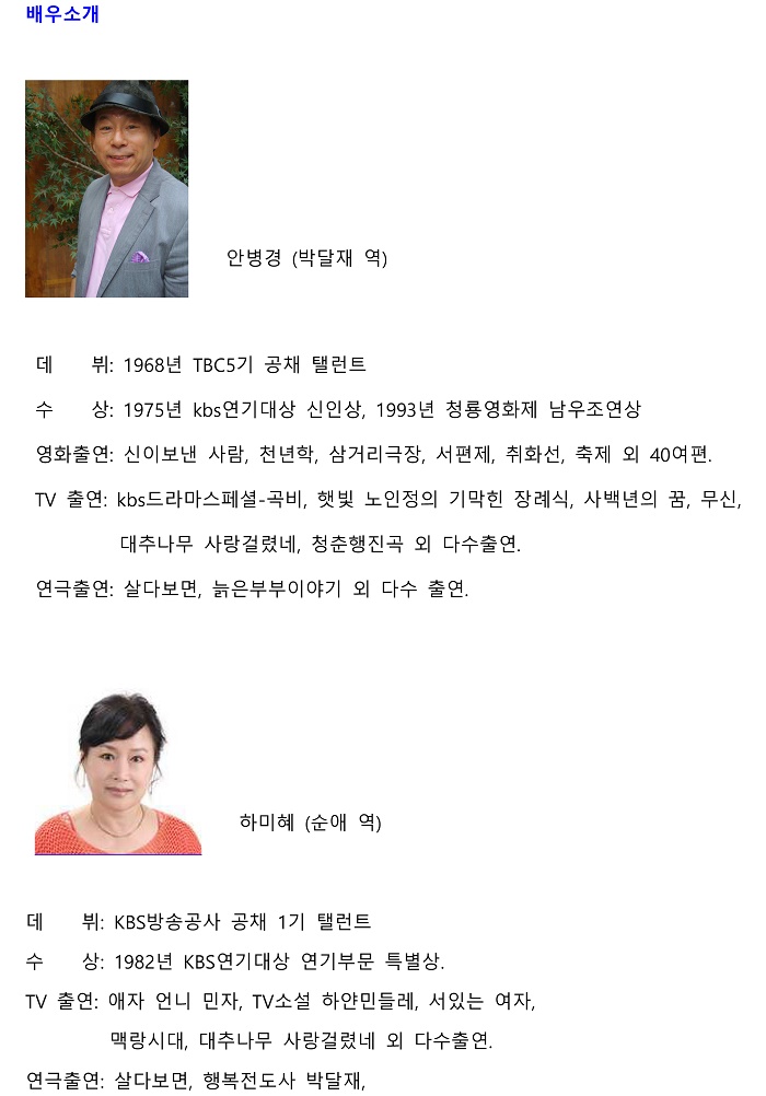 | 제작 | 극단 시민극장 | ||||||||||||||||||||||||||||||||||||||||||||||||||||||