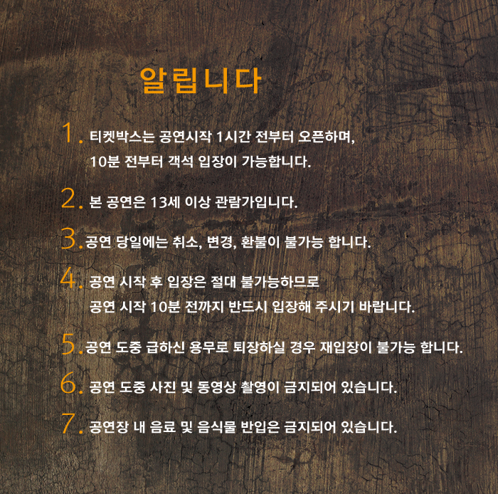 | 공연시간 | 평일 8시 / 토.일 3시 | ||||||||||||||||||||||||||||||||||||||||||||||||||||||