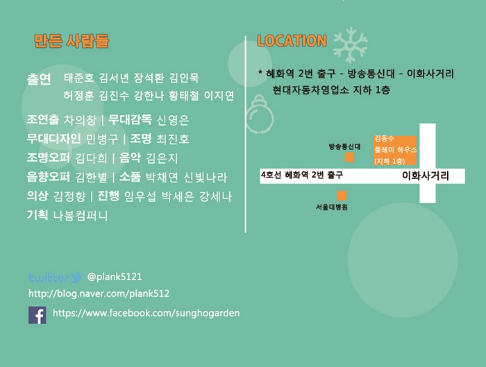 | 공연장소 | 김동수플레이하우스 | ||||||||||||||||||||||||||||||||||||||||||||||||||||||
