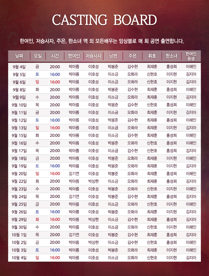 예외사항 : 단, 9월27.28일공연없음. 9월29일 4시공연 있음 |