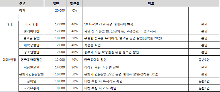 | 티켓가격 | 20,000원 | ||||||||||||||||||||||||||||||||||||||||||||||||||||||