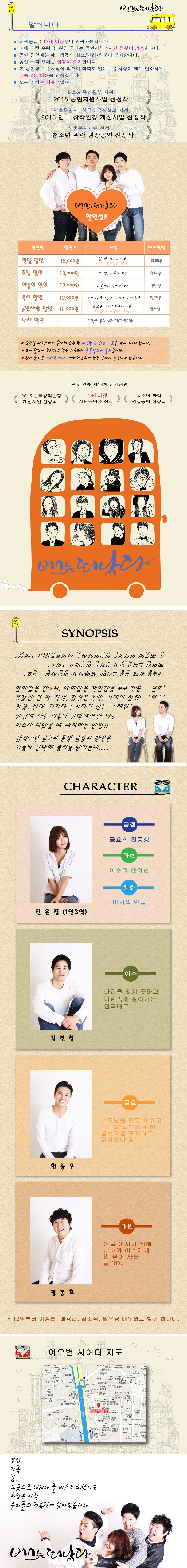 | 공연시간 | 평일 오후 8시, 토요일 오후4시,7시, 일요일 오후 4시, 화요일 공연없음 | ||||||||||||||||||||||||||||||||||||||||||||||||||||||