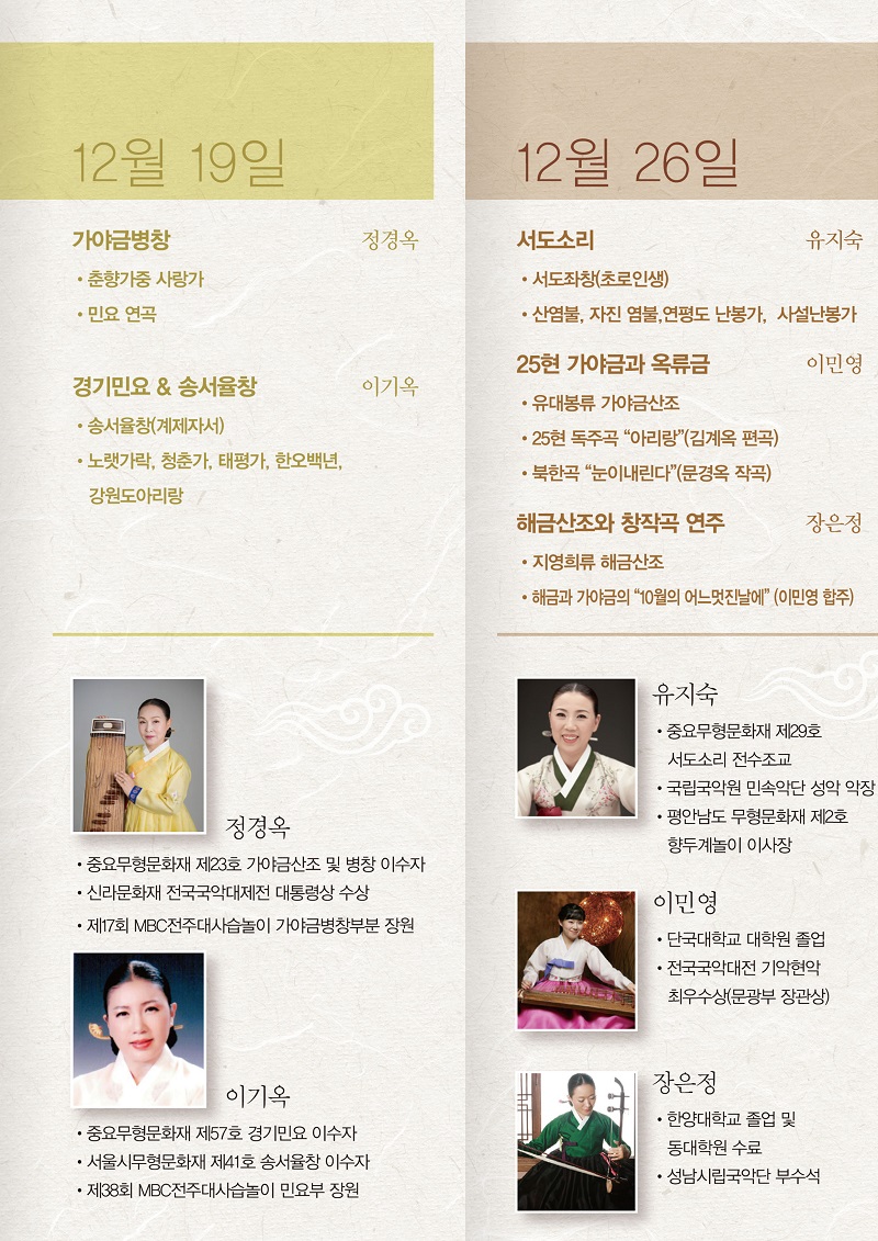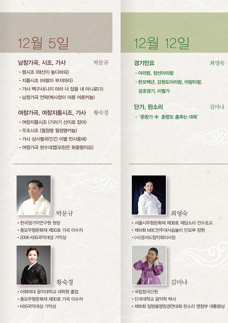 | 출연자 | 서울시무형문화재 이수자 외 | ||||||||||||||||||||||||||||||||||||||||||||||||||||||