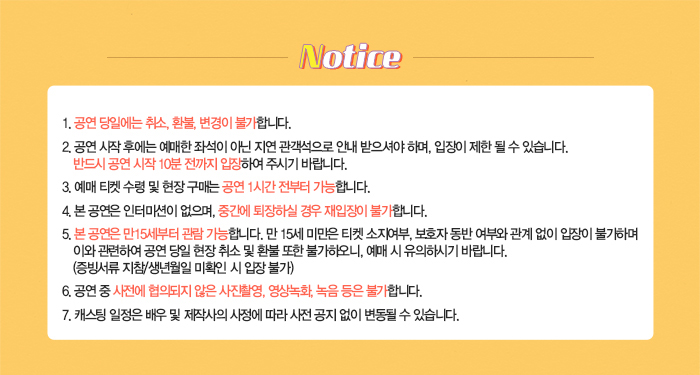 | 공연시간 | 화수목금 20:00 토일 15:00/18:30 | ||||||||||||||||||||||||||||||||||||||||||||||||||||||
