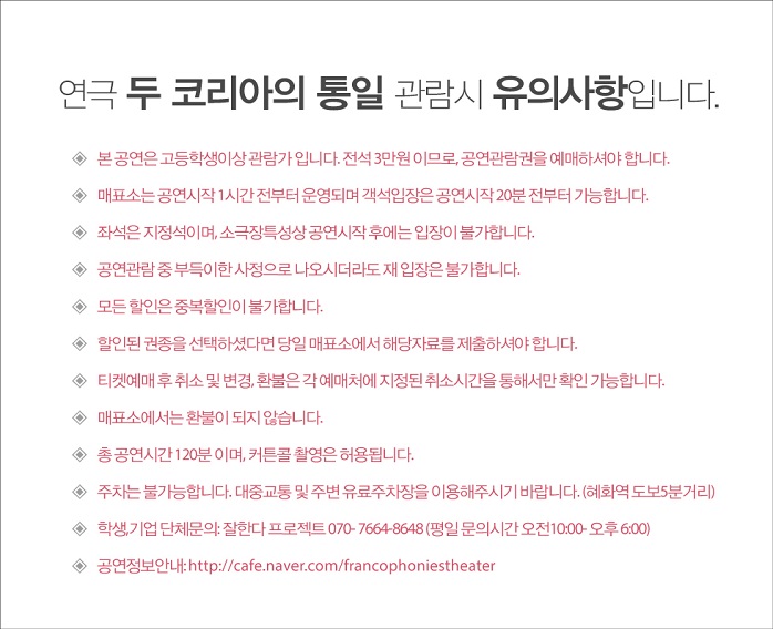 ※ 청소년단체/연극영학과 프랑스어학과 단체 10인이상- 대학로티켓닷컴 10,000원