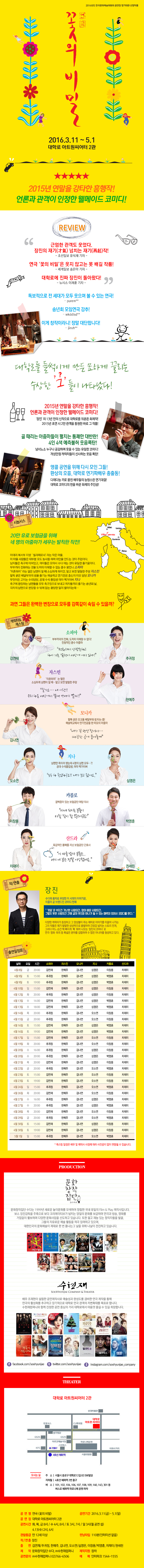 | 공연일자 | 2016-03-11(금) ~ 2016-05-01(일) | ||||||||||||||||||||||||||||||||||||||||||||||||||||||