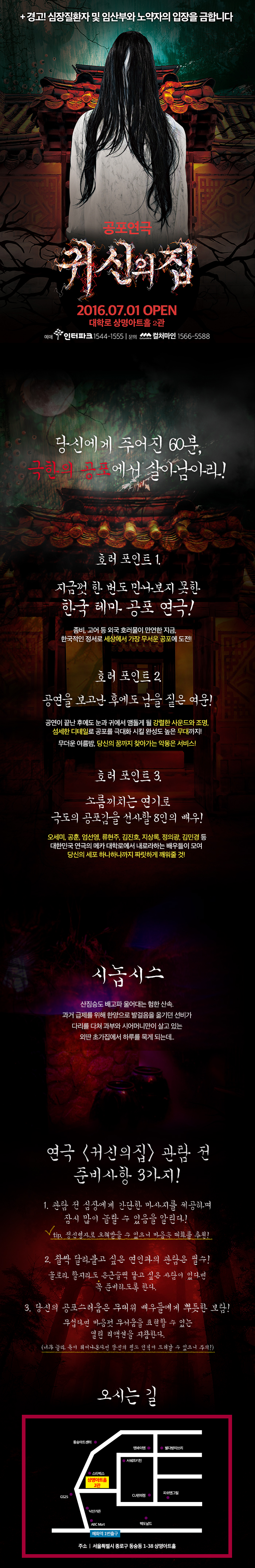 | 공연장르 | 연극(창작), 연극(호러), [테마] 연인 또는 부부, [테마] 아직은 어색한 커플, [테마] 오랜만에 만난 친구들 | ||||||||||||||||||||||||||||||||||||||||||||||||||||||
