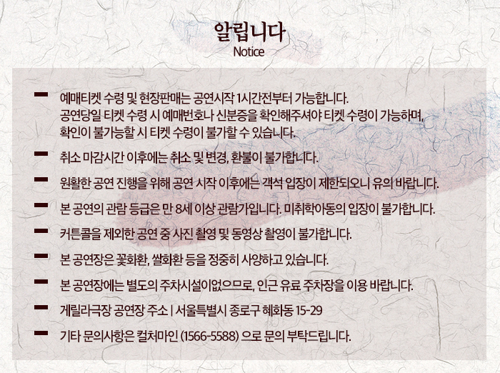 | 공연문의 | ㈜컬처마인 1566-5588 | ||||||||||||||||||||||||||||||||||||||||||||||||||||||