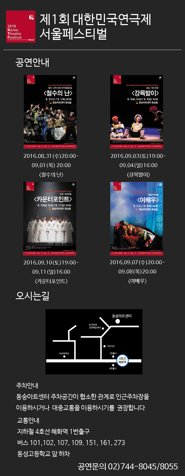 | 제작 | 주최 한국문화예술위원회 (사)한국연극협회 | ||||||||||||||||||||||||||||||||||||||||||||||||||||||