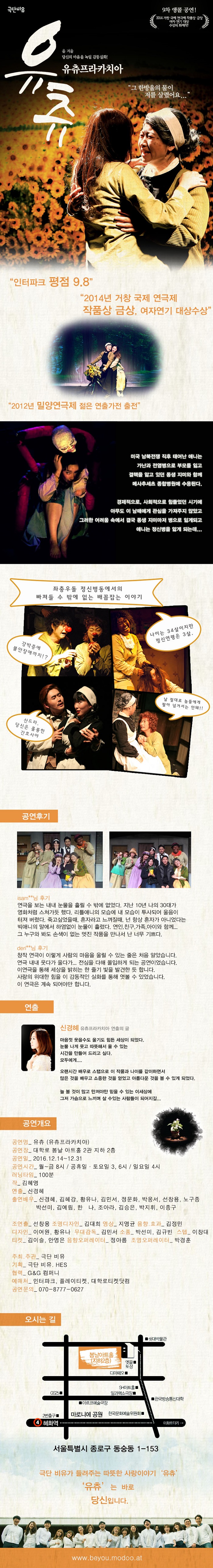 | 제작 | 극단비유, G&Gcompany | ||||||||||||||||||||||||||||||||||||||||||||||||||||||