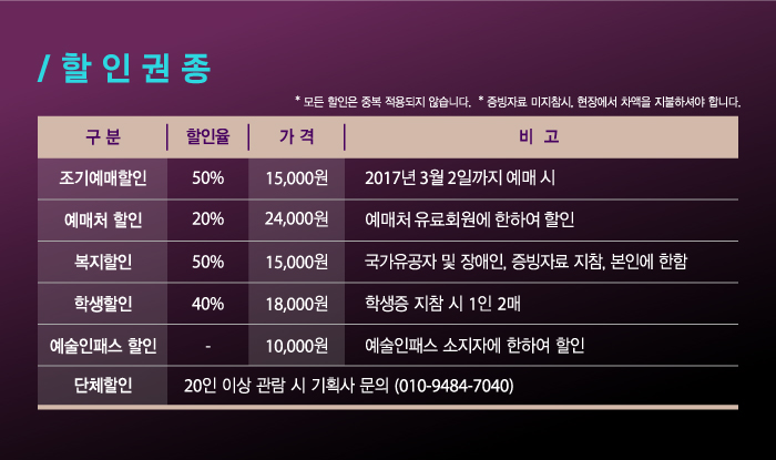 | 티켓가격 | 정가 30,000원 | ||||||||||||||||||||||||||||||||||||||||||||||||||||||