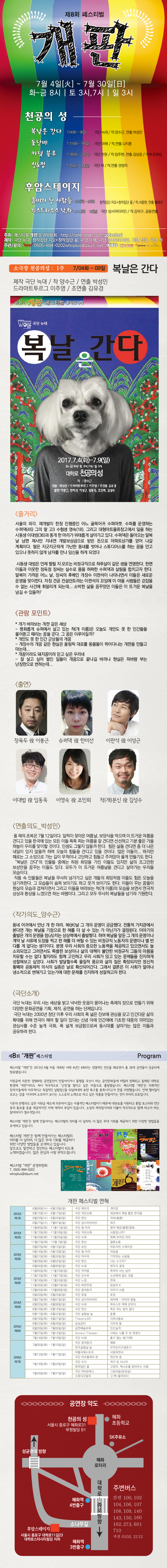 | 제작 | 제작 : 극단 늑대 주관, 문의 : (주)후플러스 | ||||||||||||||||||||||||||||||||||||||||||||||||||||||