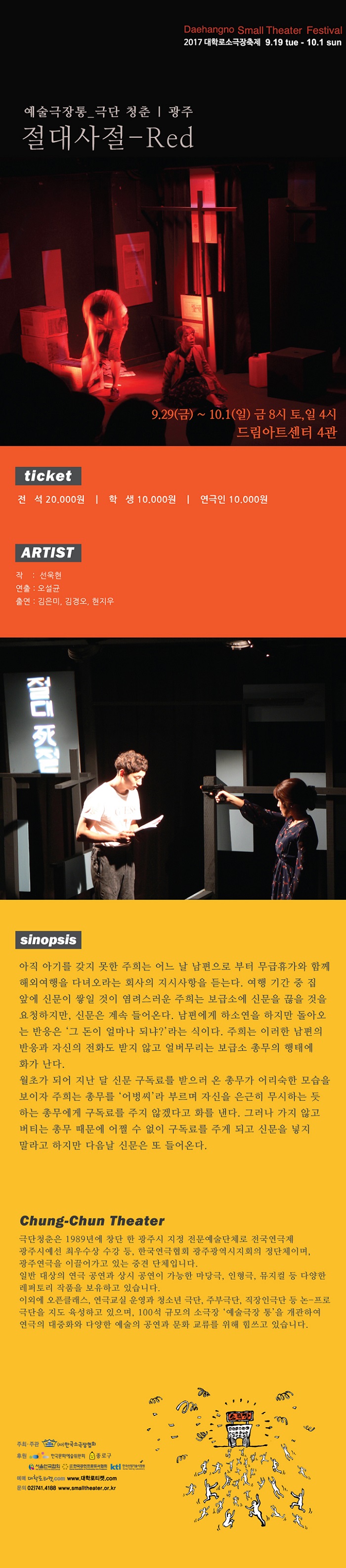 | 제작 | (사)한국소극장협회 | ||||||||||||||||||||||||||||||||||||||||||||||||||||||