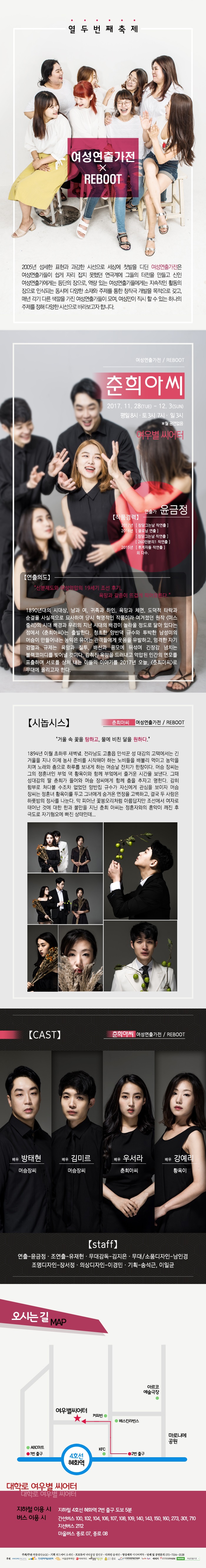 | 공연장소 | 여우별 씨어터(구. 내여페 The Stage) | ||||||||||||||||||||||||||||||||||||||||||||||||||||||