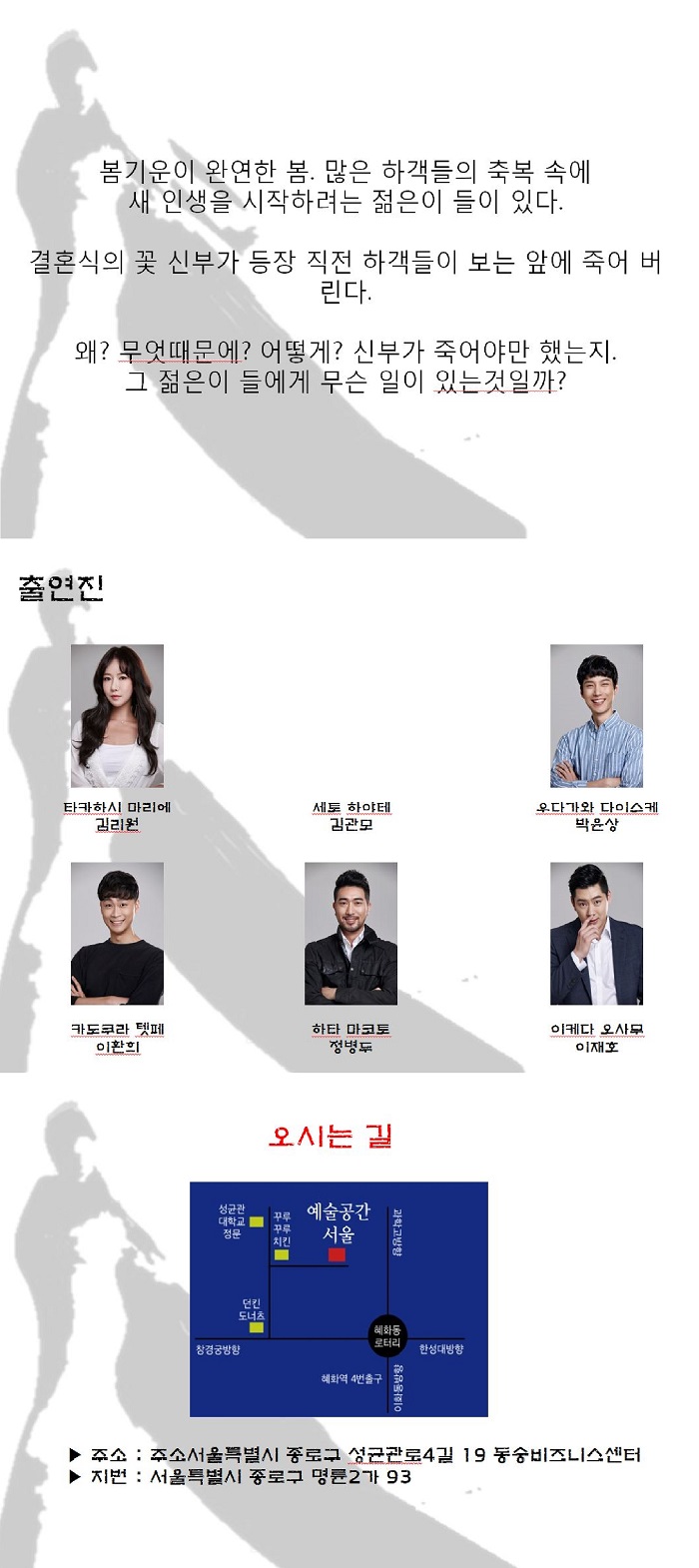| 공연시간 | 목금 20:00 / 토 16:00 19:00 / 일 16:00 | ||||||||||||||||||||||||||||||||||||||||||||||||||||||