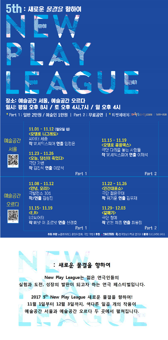 | 제작 | 제작 U2 Theater/ 주최,주관: 뉴플레이리그 운영위원회, 극단 가변 | ||||||||||||||||||||||||||||||||||||||||||||||||||||||
