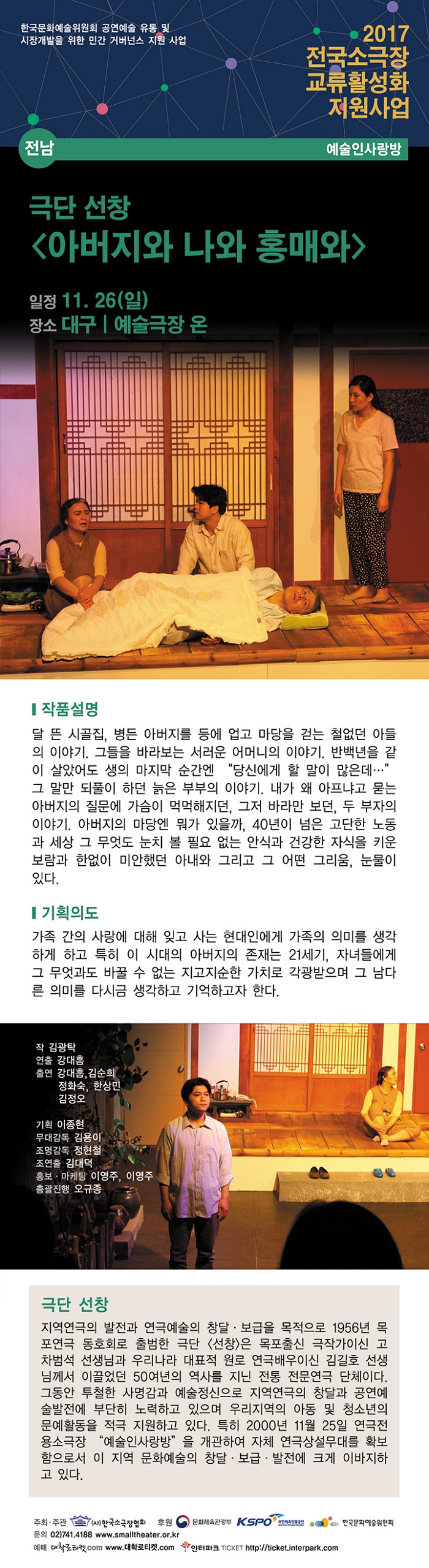 | 제작 | (사)한국소극장협회 | ||||||||||||||||||||||||||||||||||||||||||||||||||||||