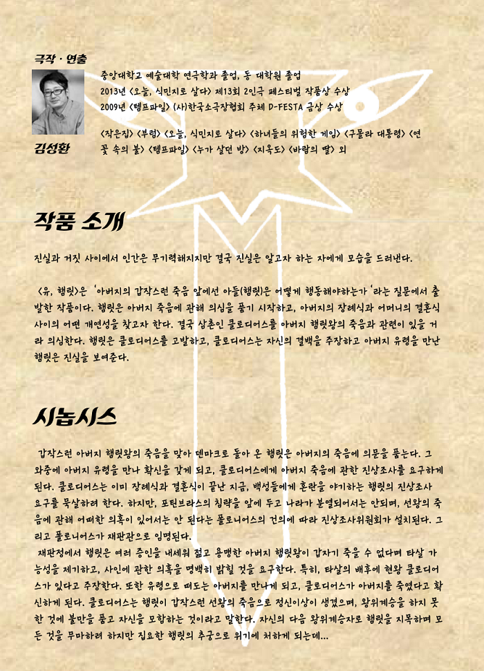 | 제작 | 극단 민예 | ||||||||||||||||||||||||||||||||||||||||||||||||||||||