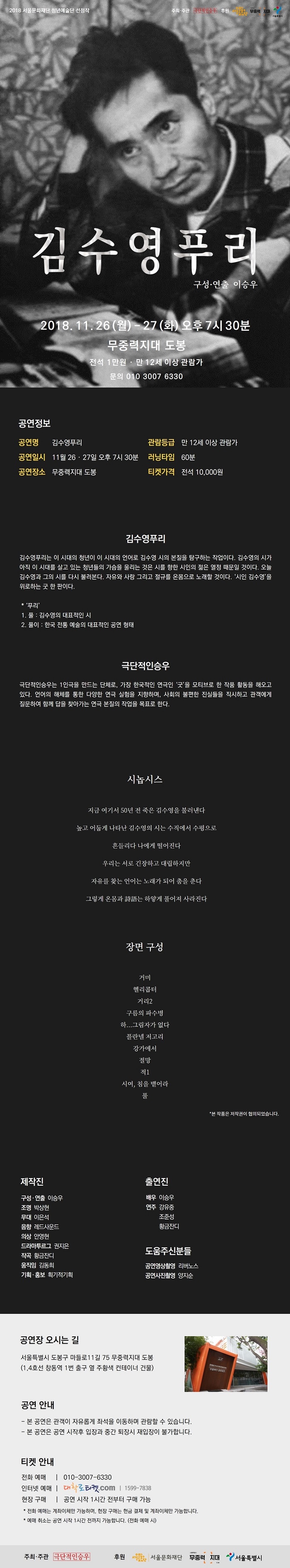 | 제작 | 주최,주관 : 극단적인승우 / 후원 : 서울문화재단, 무중력지대 도봉, 서울시 | ||||||||||||||||||||||||||||||||||||||||||||||||||||||