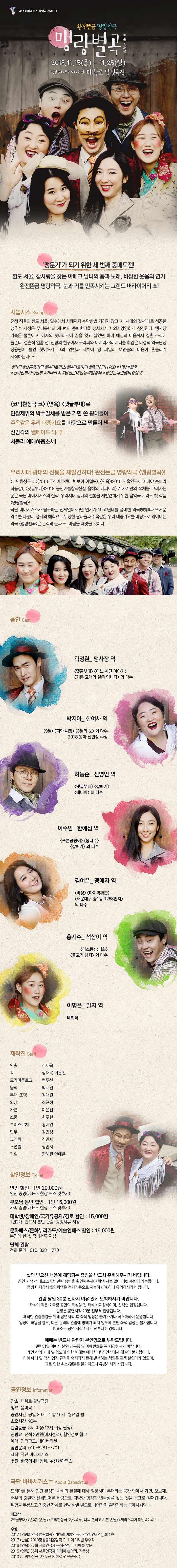 | 제작 | 제작: 극단 바바서커스 / 후원: 한국메세나협회, ㈜신한아펙스 | ||||||||||||||||||||||||||||||||||||||||||||||||||||||