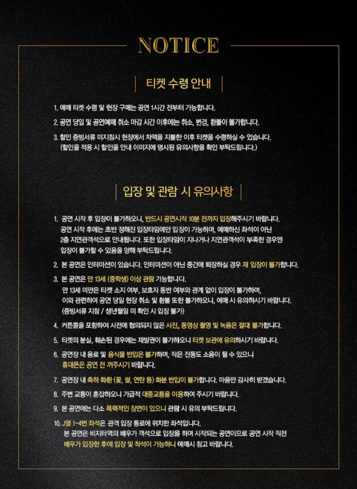 | 티켓가격 | R석 66,000원 / S석 44,000원 | ||||||||||||||||||||||||||||||||||||||||||||||||||||||
