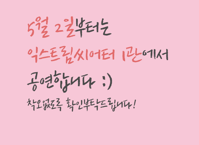 | 공연장소 | H씨어터(구.익스트림씨어터 2관) | ||||||||||||||||||||||||||||||||||||||||||||||||||||||