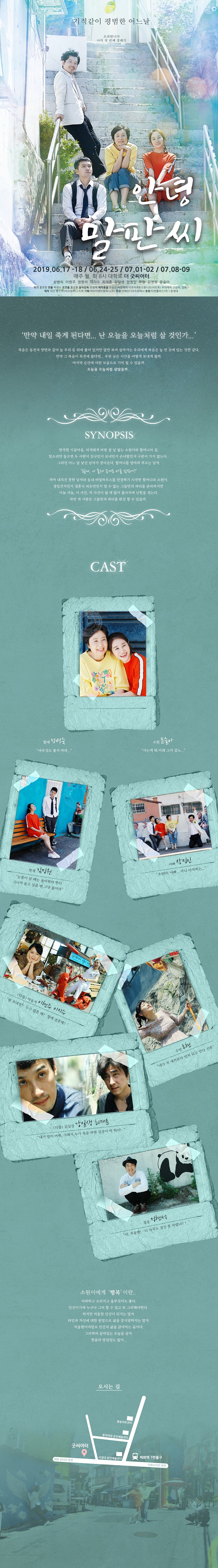 | 공연장르 | 연극(창작), 연극(가족극), [테마] 부모님과 함께 관람, [테마] 연인 또는 부부, [추가분류] 초연 | ||||||||||||||||||||||||||||||||||||||||||||||||||||||