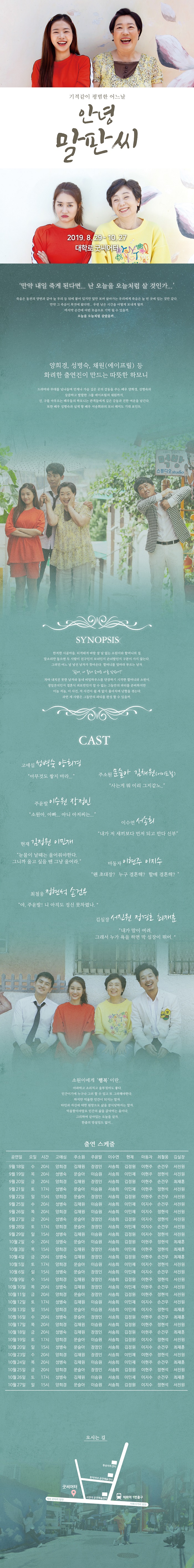 | 제작 | 극단 현/㈜아츠컴퍼니 뜨락 | ||||||||||||||||||||||||||||||||||||||||||||||||||||||