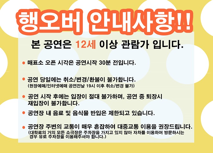 | 공연문의 | 02-742-7611 마지막 공연시간 전까지 문의가능 | ||||||||||||||||||||||||||||||||||||||||||||||||||||||