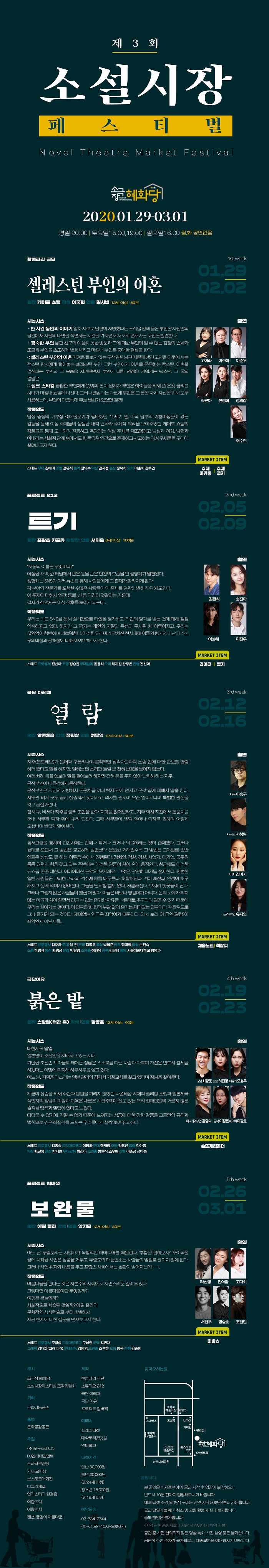 | 제작 | 소극장 혜화당 / 소설시장페스티벌 조직위원회 | ||||||||||||||||||||||||||||||||||||||||||||||||||||||