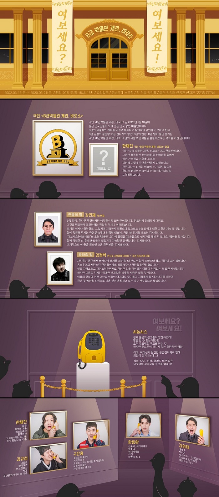 | 제작 | 극단 B급 박물관 개관, 비로소 | ||||||||||||||||||||||||||||||||||||||||||||||||||||||