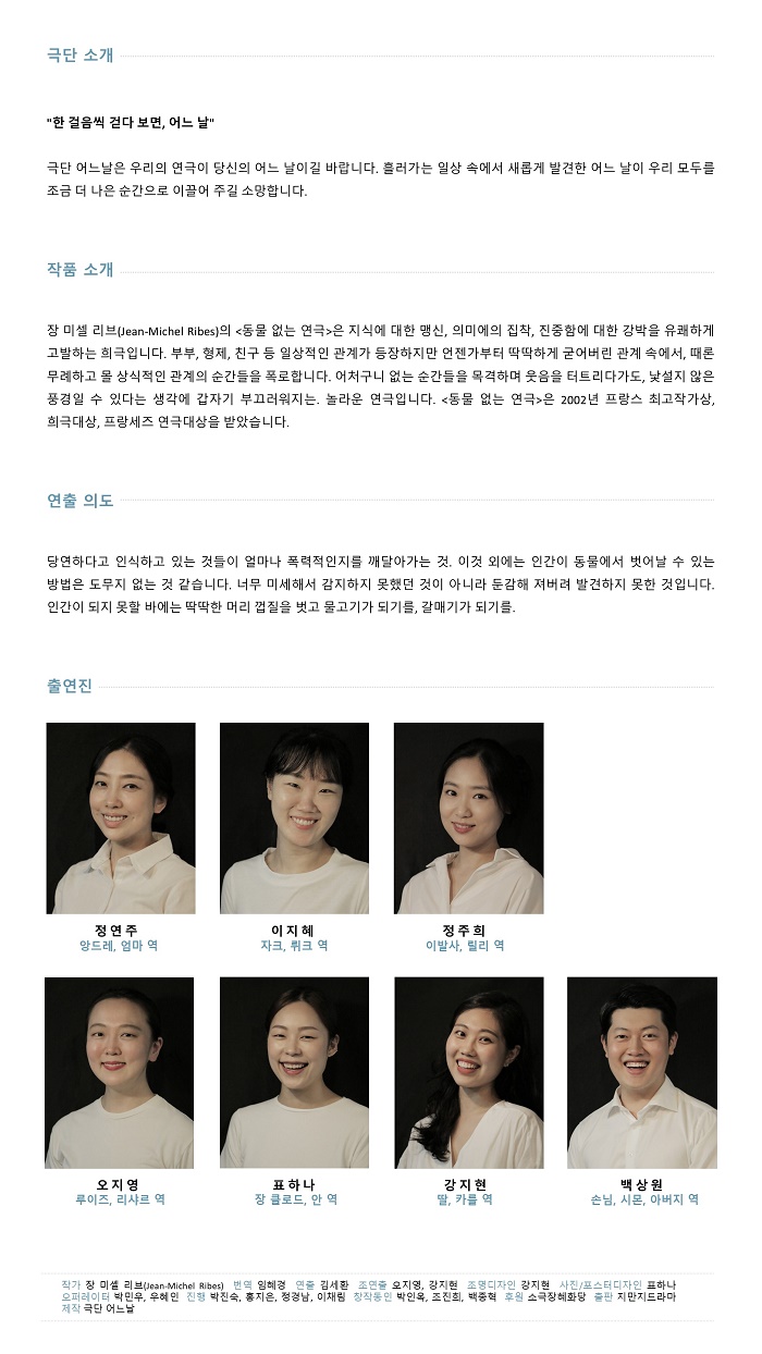 | 제작 | 극단 어느날 | ||||||||||||||||||||||||||||||||||||||||||||||||||||||