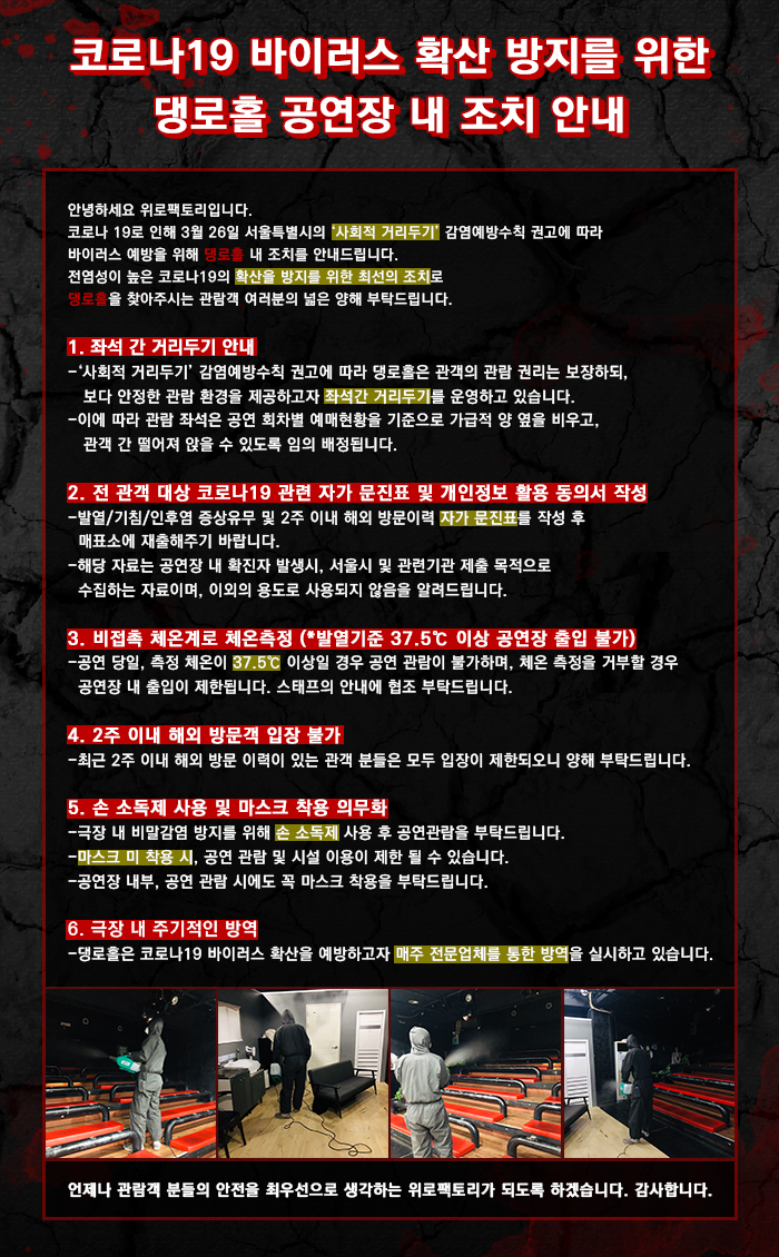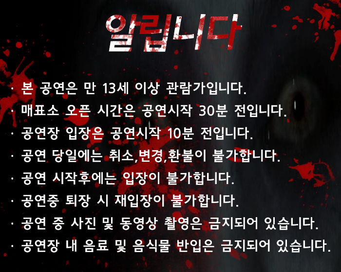 | 공연장르 | 연극(창작), 연극(호러), [추가분류] 오픈런 | ||||||||||||||||||||||||||||||||||||||||||||||||||||||