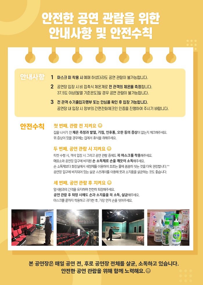 | 공연시간 | 토 13:00 / 일 14:00 / 월화수목금 공연 없음 | ||||||||||||||||||||||||||||||||||||||||||||||||||||||