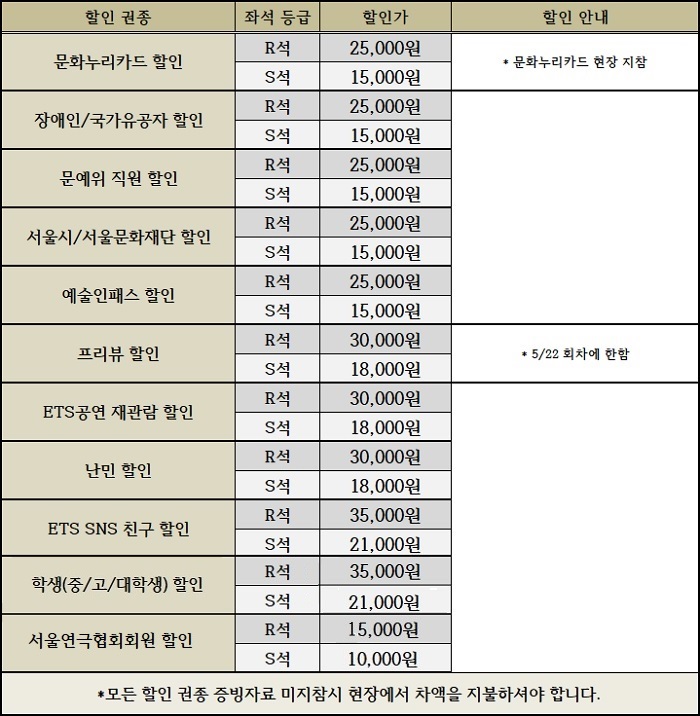 | 티켓가격 | R석 50,000원 / S석 30,000원 | ||||||||||||||||||||||||||||||||||||||||||||||||||||||