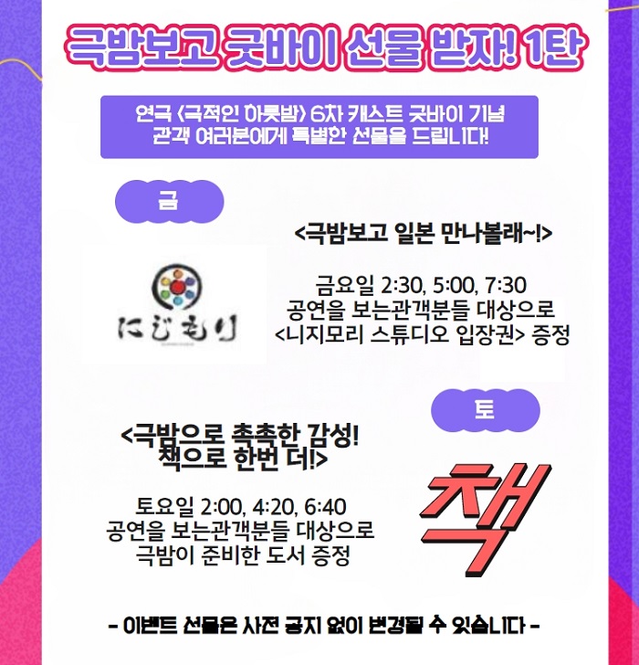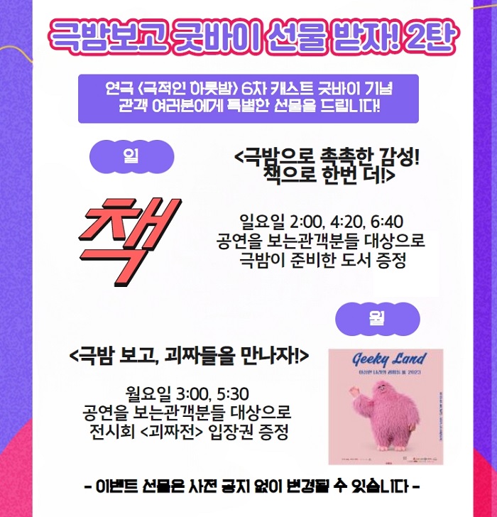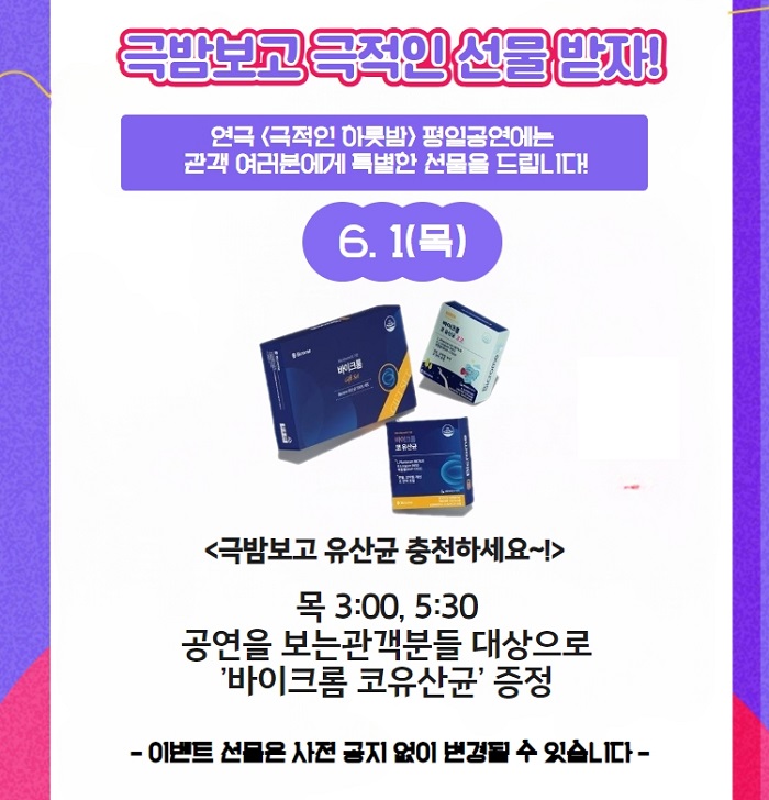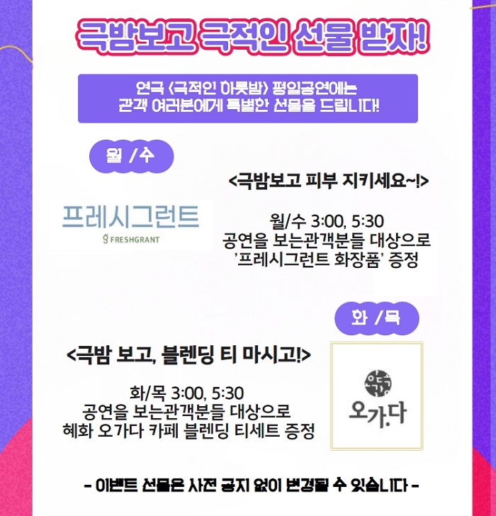 | 공연장르 | 연극(코미디), 연극(로맨스), [추가분류] 오픈런 | ||||||||||||||||||||||||||||||||||||||||||||||||||||||